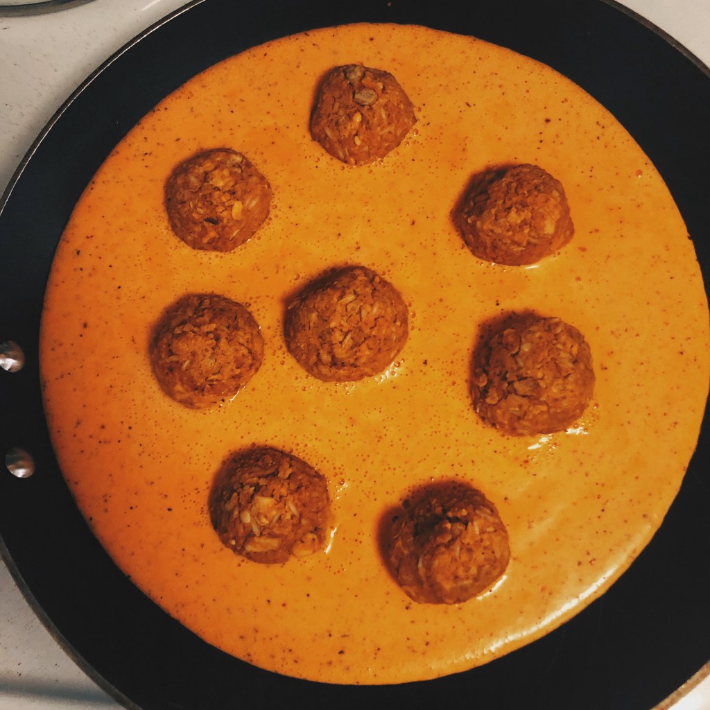 HELLO! These chickpea meatballs are PACKED with flavor and hold together well enough that you can put them on a sandwich with marinara, in a pita with cucumbers and tomatoes, or over pasta with my roasted red pepper sauce, and it won’t turn into a mushy mess! So let’s get into it.